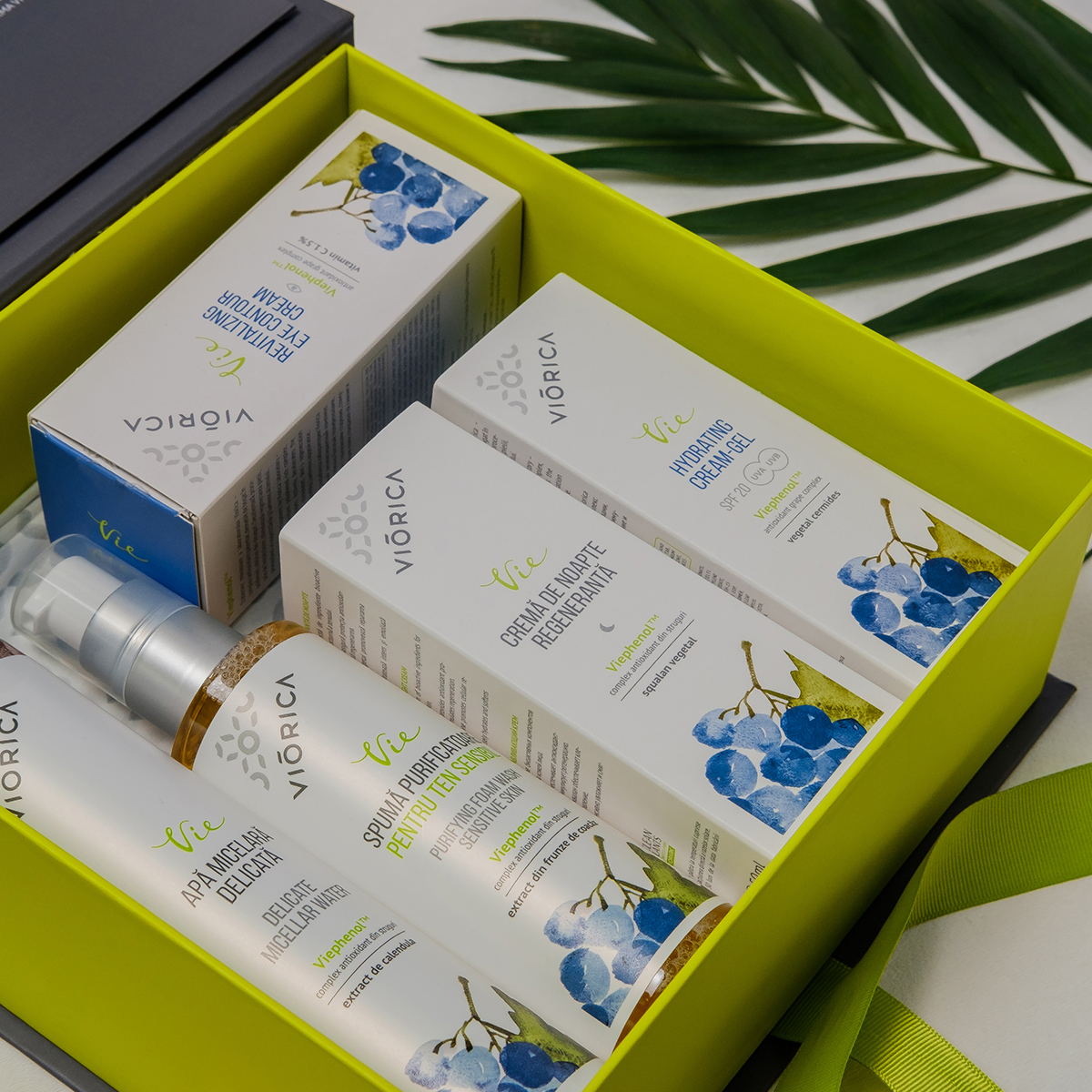 All VIORICA VIE products are based on the unique ViephenolTM antioxidant complex from Moldovan grapes. The complex is especially rich in proanthocyanidins, a rare natural antioxidant. ViephenolTM actively prevents photoaging, stimulates collagen production, and supports skin regeneration on a cellular level.